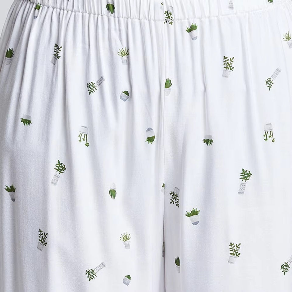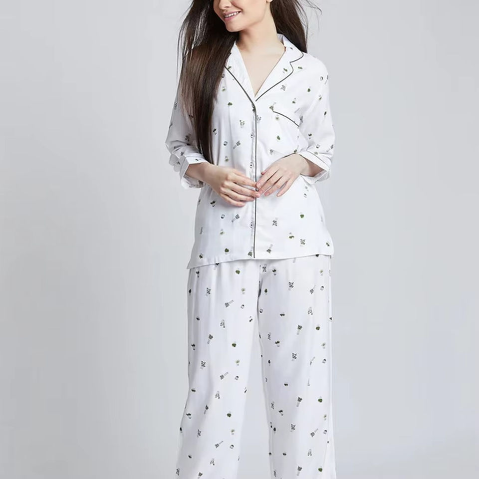 Trending Style Women's Sleepwear Elegant Printed Shirts Trousers Sets Elastic Waist Summer Custom Made High Thermal Front
