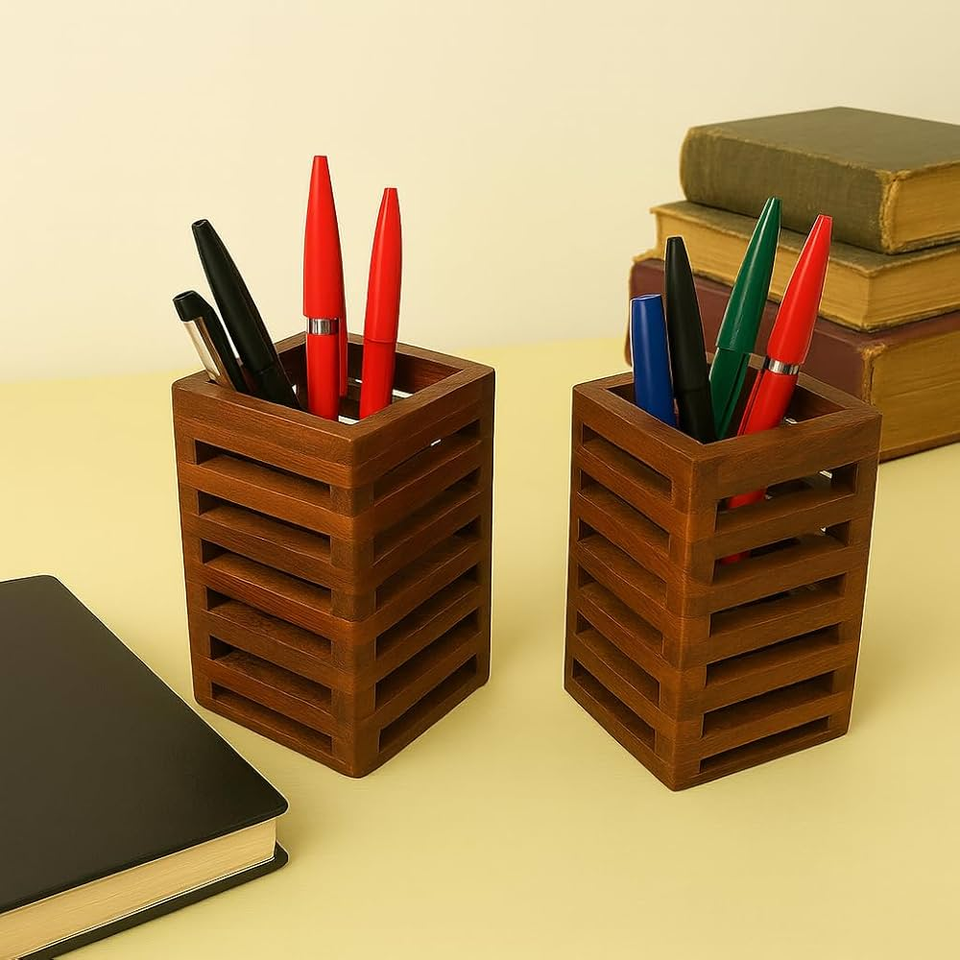 Trending Stylish Eco-friendly High Quality Wood & Metal Pen Holder Desk Organizer Box for Corporate Office Business Use 2025