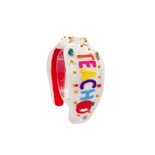 Trending Teacho Colorful Beads Hairbands Luxury Accessory for Back-to-School Hand Embellished Casual Versatile Beaded Knotted