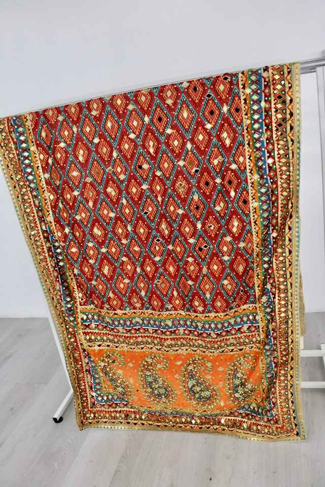 Trending Traditional Pakistani Silk Shawls Colorful Multicolor Embroidery with Mirror Work and Ethnic Style Chinon Dupatta