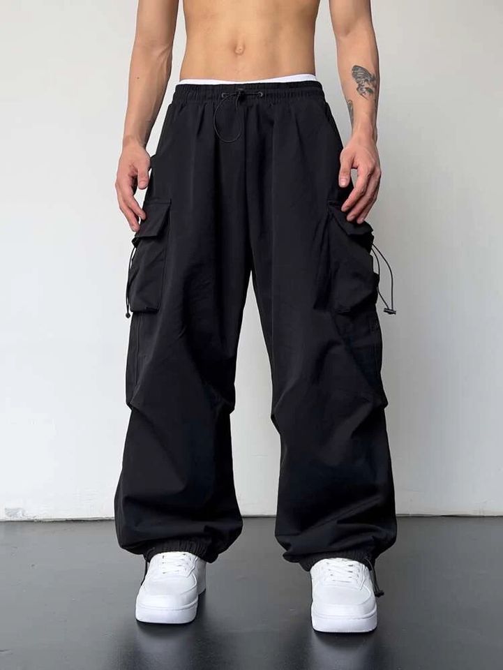 Trending Unisex Black Cargo Pant Baggy Designer Style Loose Fit Street Style Baggy Cargo Trousers for Men Custom Design Pant