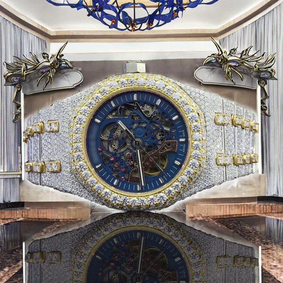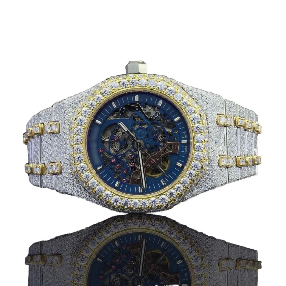Trending VVS Leb Grown Diamond Studded Iced Out Diamond Watch for Men Rose and White Round Dial Stainless Steel Hip Hop Watch