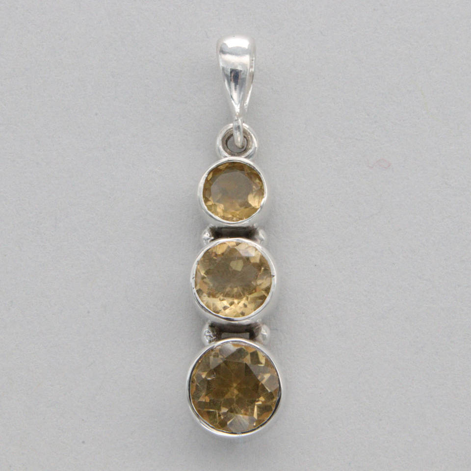 Trending Vintage Three-Stone Handmade Bezel Set Citrine Gemstone Charm Pendant 925 Sterling Silver Fine Jewelry for Wedding
