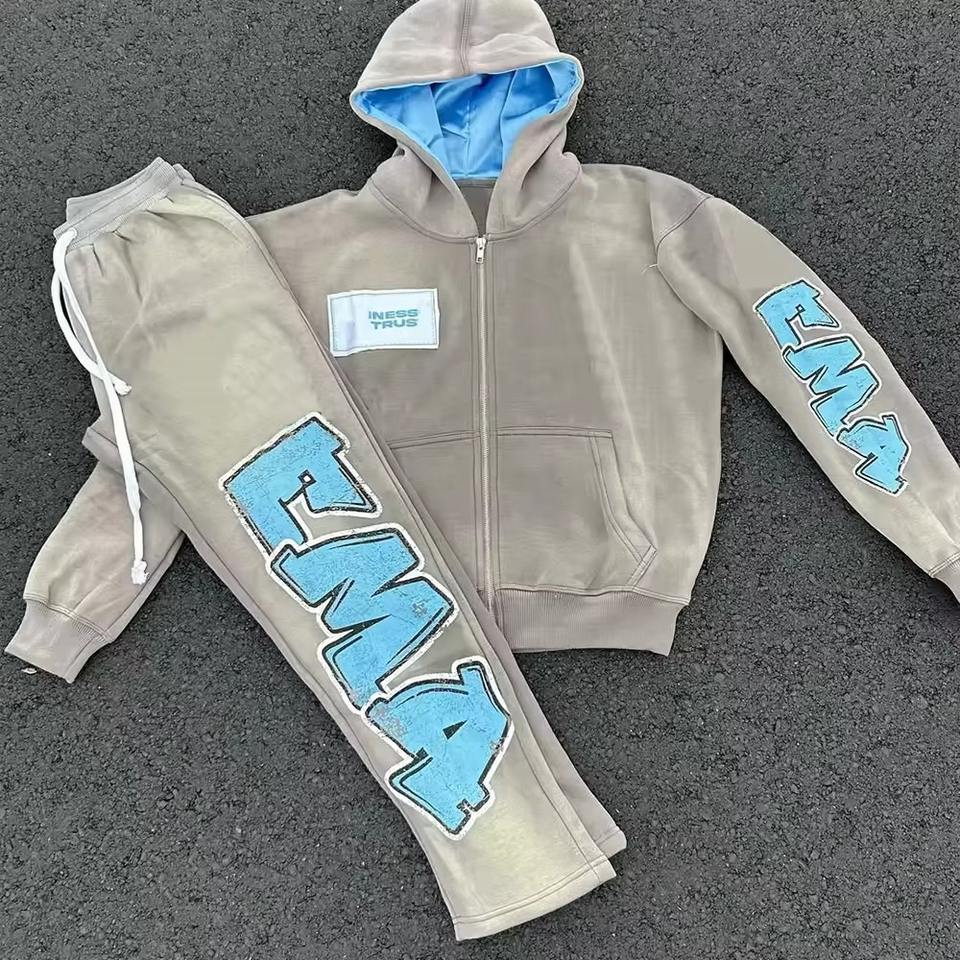 Product name:Trending Vintage Wash Tracksuit Set Unisex Zip Hoodie & Joggers