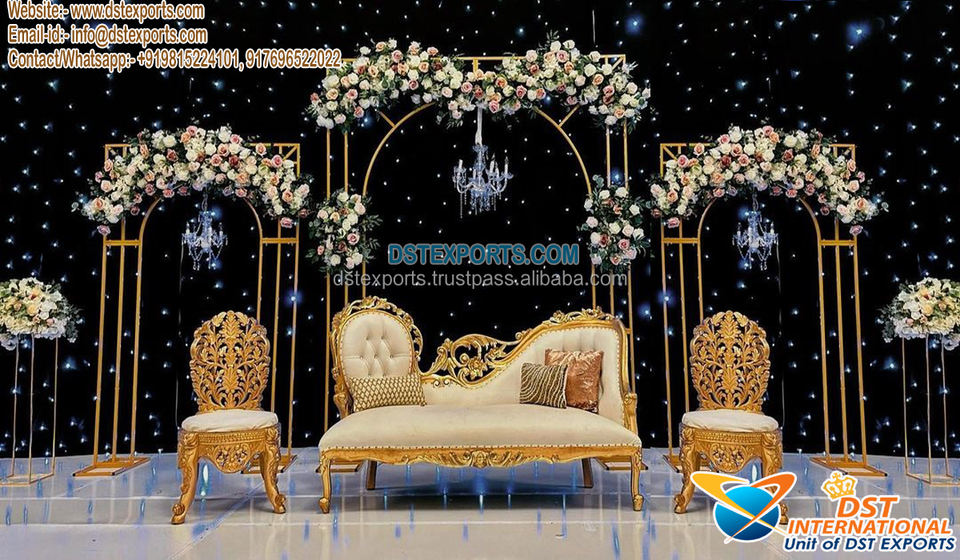 Trending Wedding Event Stage Decor Metal Arches Grand Muslim Theme Decorated Reception Stage Arabian Stage for Grand Wedding