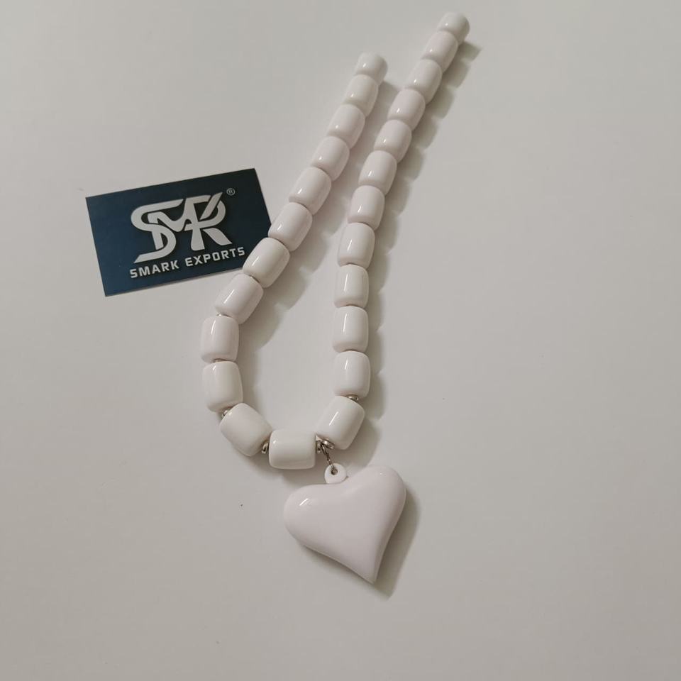 Trending White Resin Heart Pendant Necklace with Magnetic Lock and Chunky Beads Design for Women and Girls