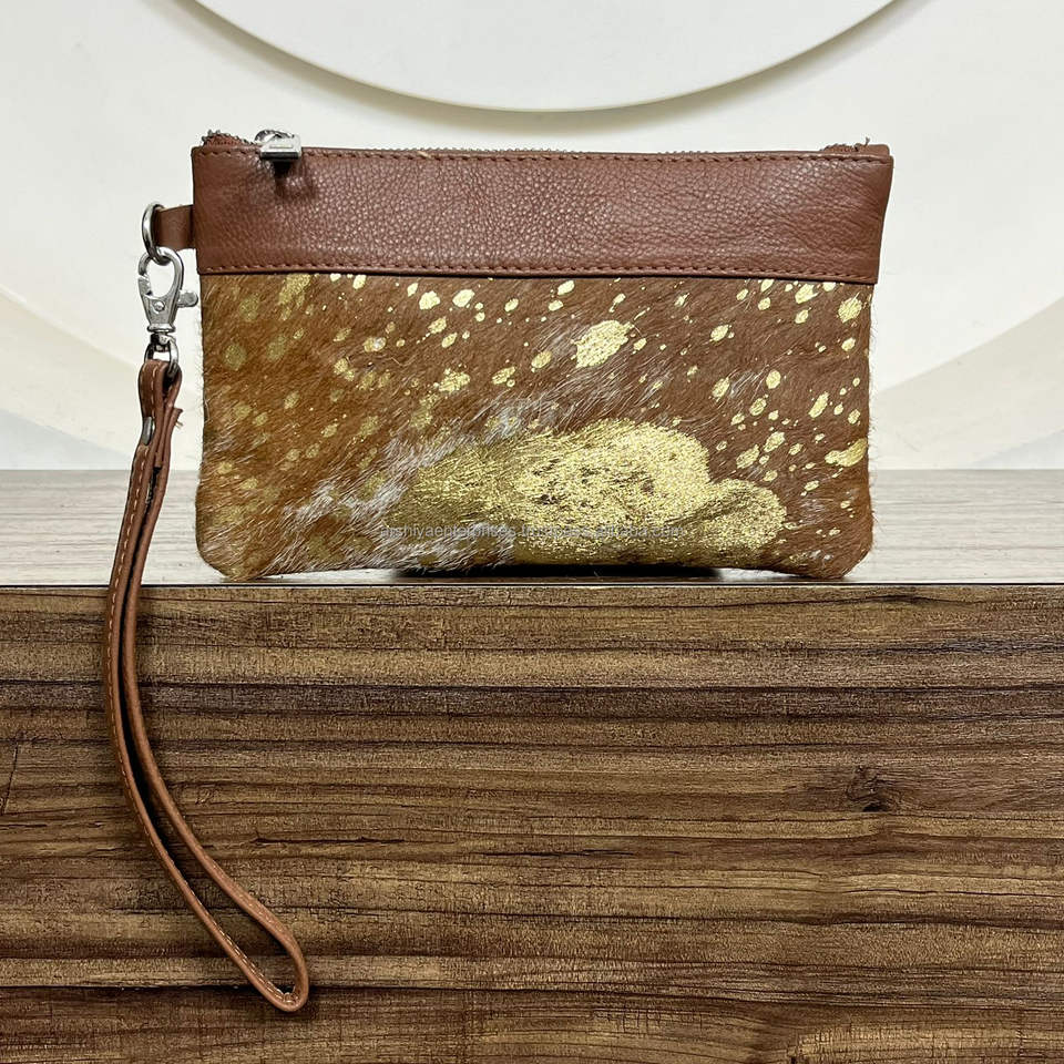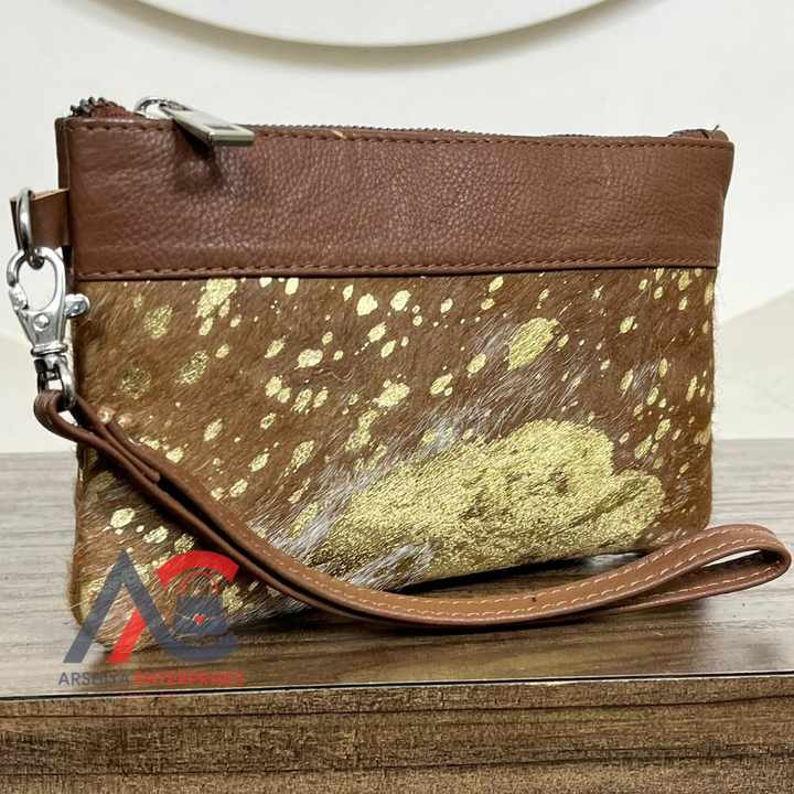 Product Name:Hair on Metallic Genuine Cowhide Leather Pouch