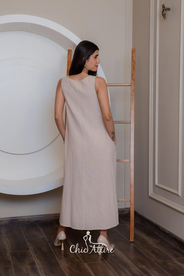 Trending Women Elegant Sleeveless A-line Maxi Dresses for Sale and Gifting Dresses Side Pockets Elegant Printing Party Dress