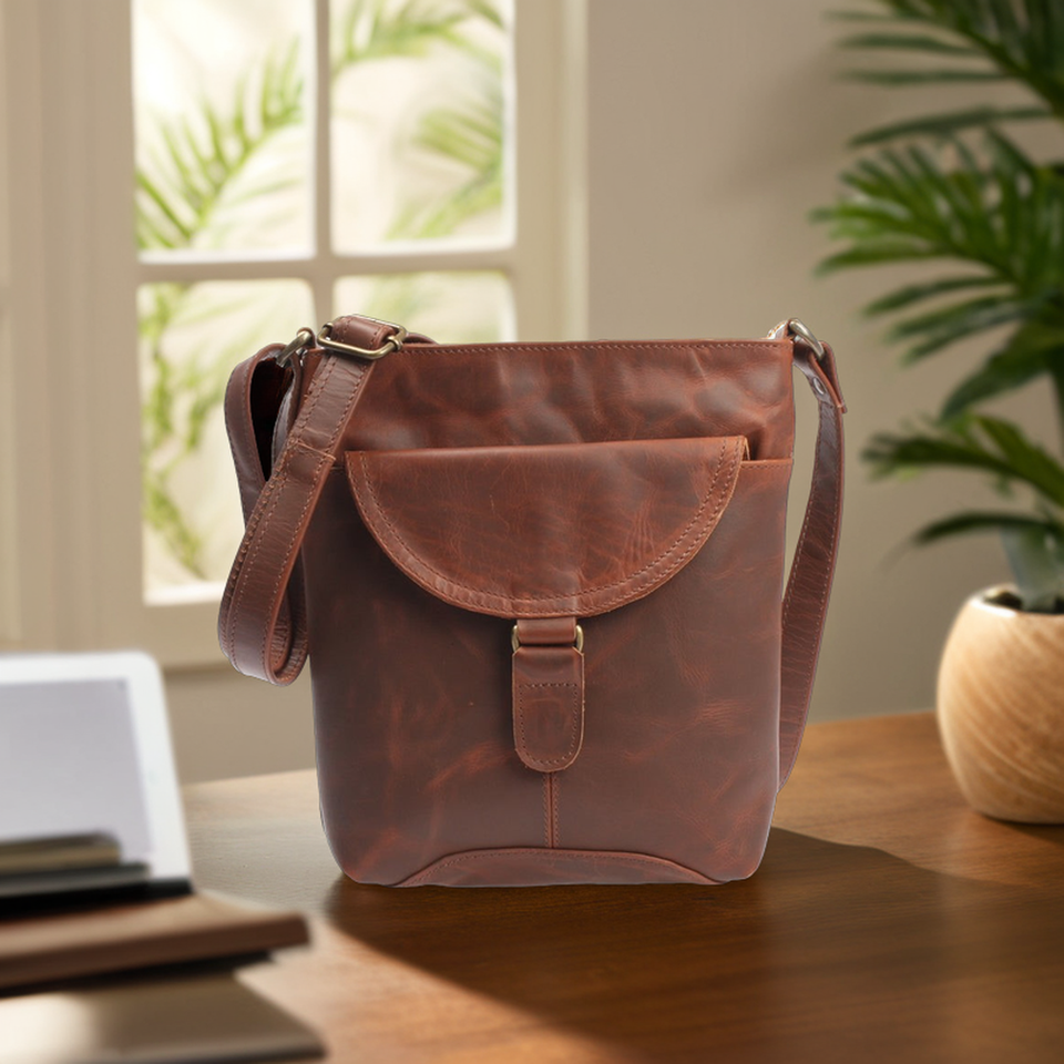 Trending Women's Waxy Brown Leather Vintage Crossbody Sling Bag Custom Pattern Water Resistant Adjustable Shoulder Strap