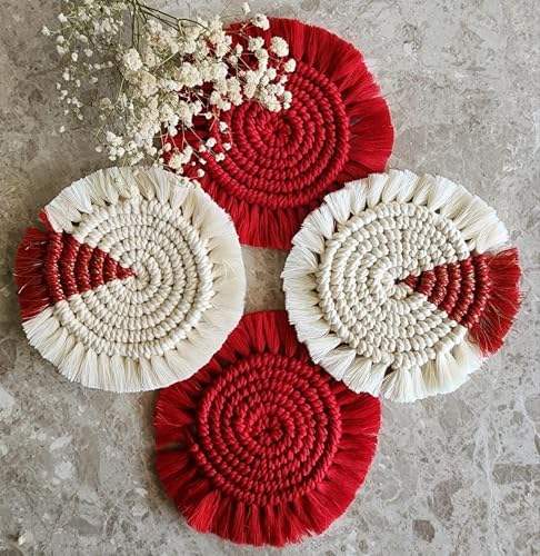 Trending design natural cotton macrame coaster with circular design and organic texture perfect for hygge style