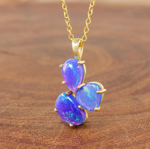 Trending gemstone pendant necklace triple stone fire lavender ethiopian opal necklace with gold plated chain jewelry for women