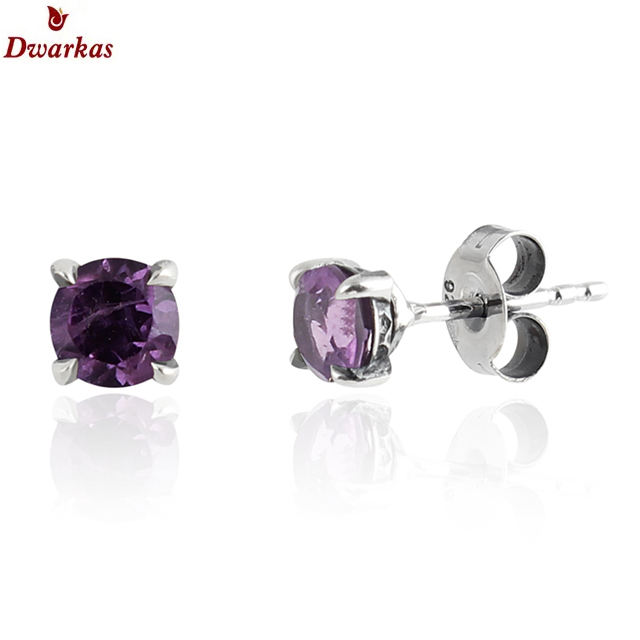 Trending jewelry earrings 925 sterling silver purple amethyst gemstone stud earrings for women