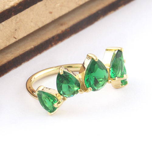 Trending jewelry green emerald quartz multi gemstone ring brass 18k gold plated cocktail party wear statement crown style ring