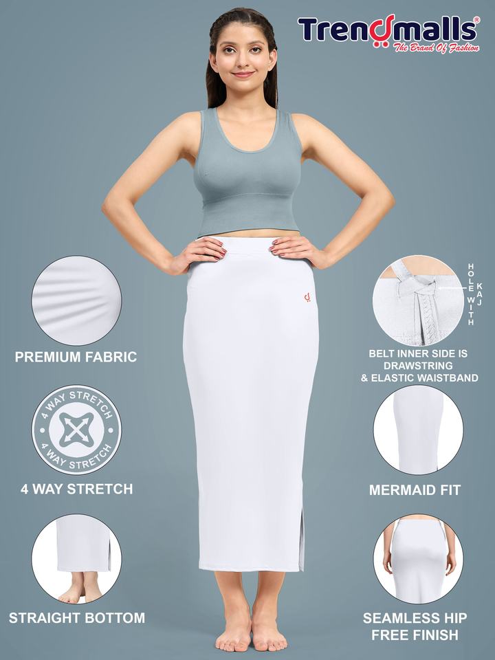Trendmalls Breathable for Lycra Spandex Saree Shapewear Petticoat for Women Model P02-White