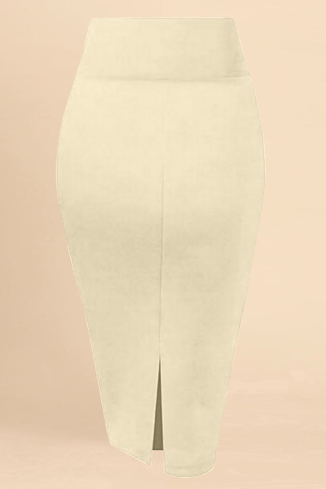 Trendmalls Beige Women's Formal Pencil Skirt Knee Length with Comfortable Elastic Waist Band Plain Dyed for