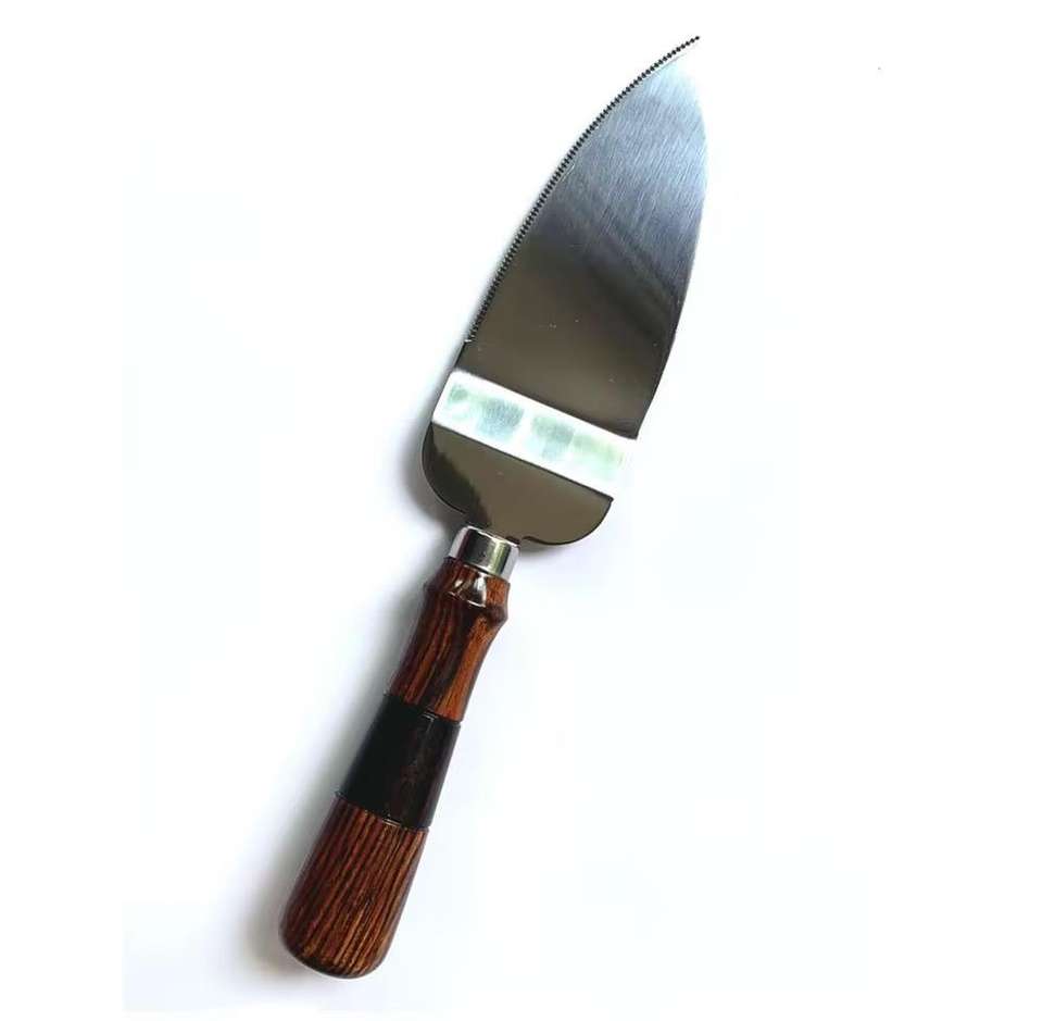 Trends Indian Factory Wooden Handle Cake Server and Knife Set Silver Finishing for Wedding Anniversary Engagement Birthday Party