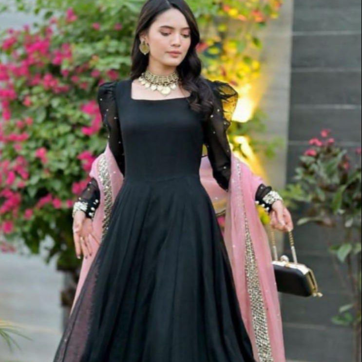 Trends by Cp Premium Quality Pakistani Party Wear Girls Chiffon Maxi Gown Frock with Customized Designs in Printed Fabric