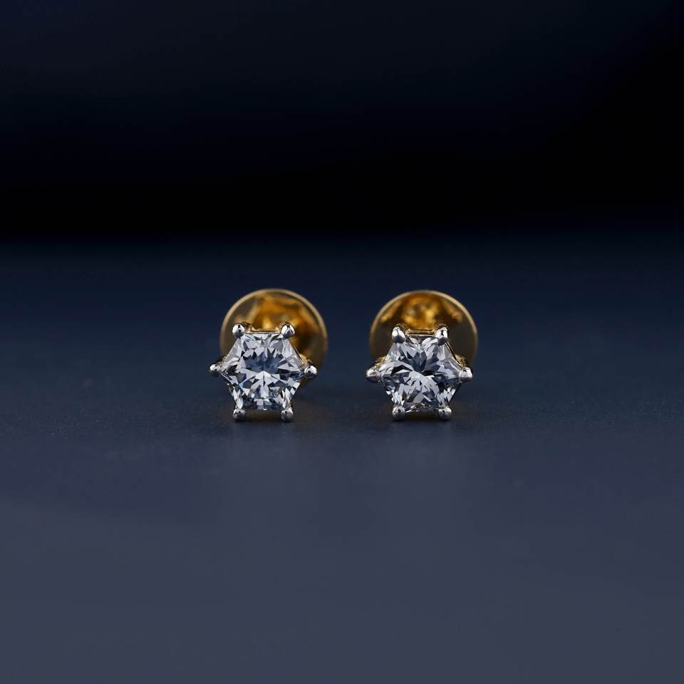 Trendy 0.70 CT Light Blue Hexagon Diamond Stud Earrings 6 Prong Set Eco-Friendly Gold for Parties Handmade Solitaire Stud for