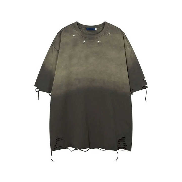 Trendy 100% Cotton Oversized Vintage Acid Washed Denim T-Shirts Distressed Cut Hem with Long Length Blank T-Shirts