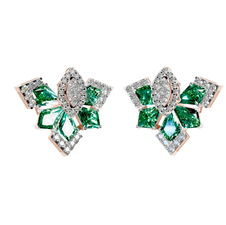 Trendy 14K Solid Gold Fine OEM ODM Jewelry Manufacturer Synthetic Emerald Lab Grown Diamond Hip Hop Style Earrings IGI Certified