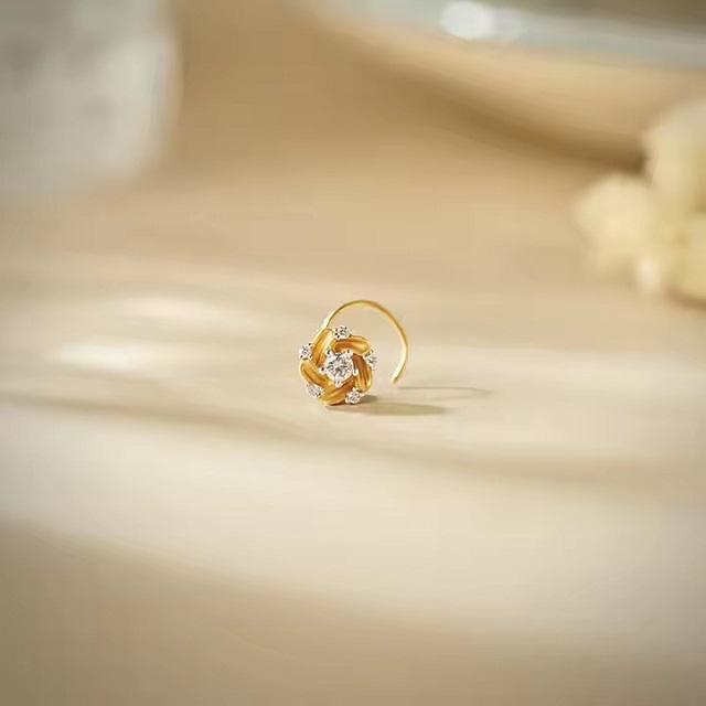 Trendy 14KT Rose Gold Lab Grown Diamond Nose Pin Stylish Floral Design Fine Piercing Jewelry for Women Everyday Wear