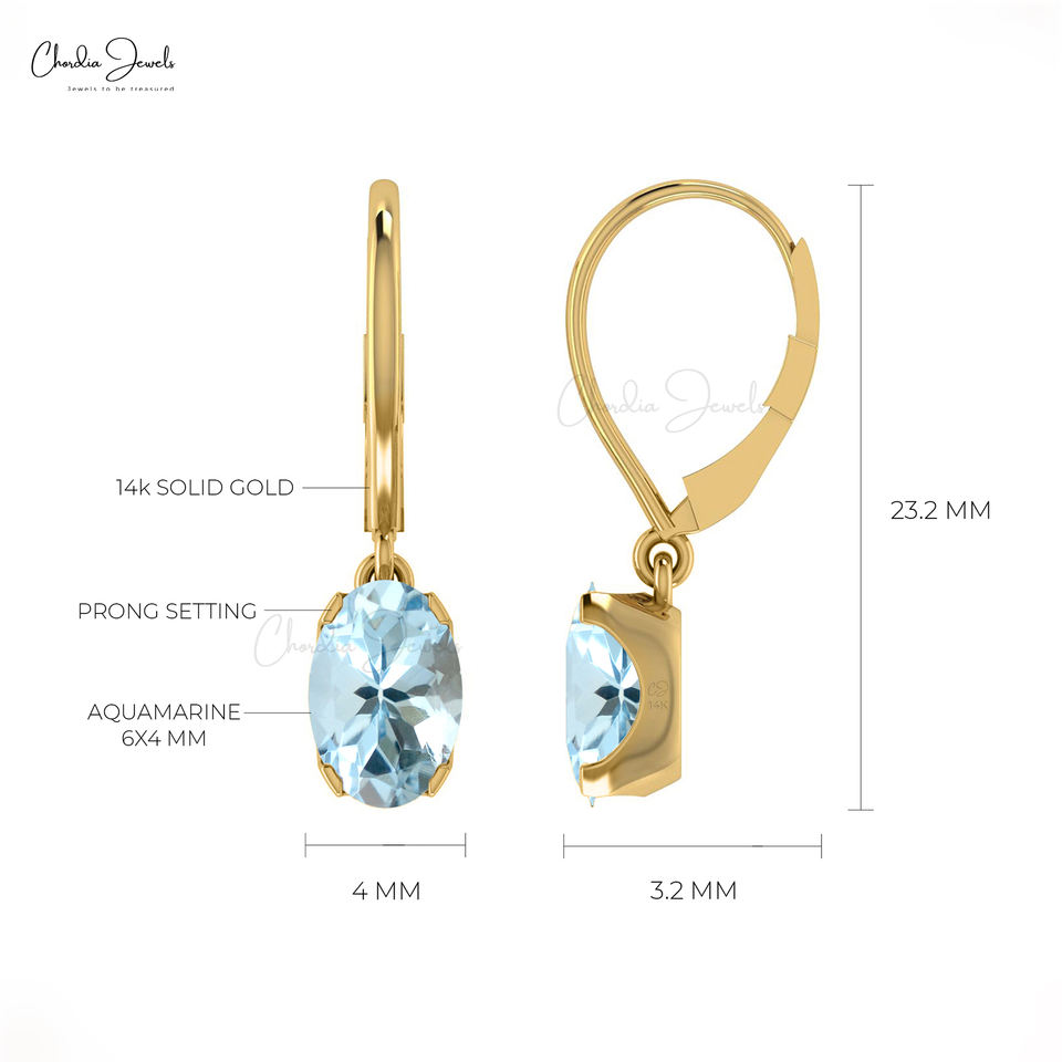 Trendy 14k Solid Gold Natural Aquamarine Lever Back Earrings 0.8 Ctw Oval Cut Gemstone Dangle Drop Earrings Wholesale Jewelry