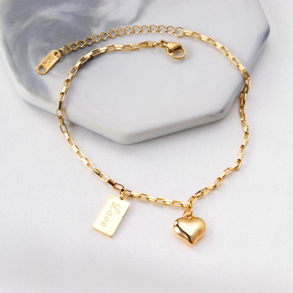 Trendy 18k Gold Plated Heart Charm Anklets Stainless Steel Anklet Jewelry Custom Anklet