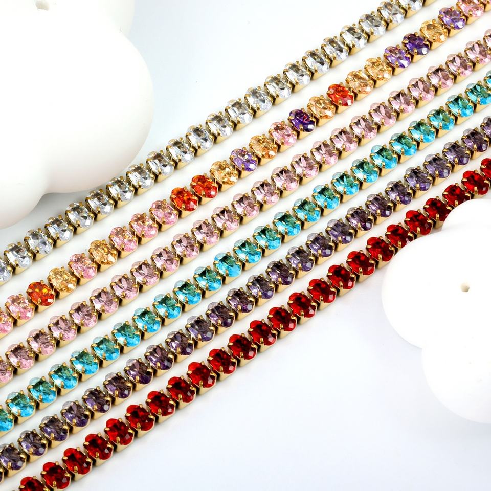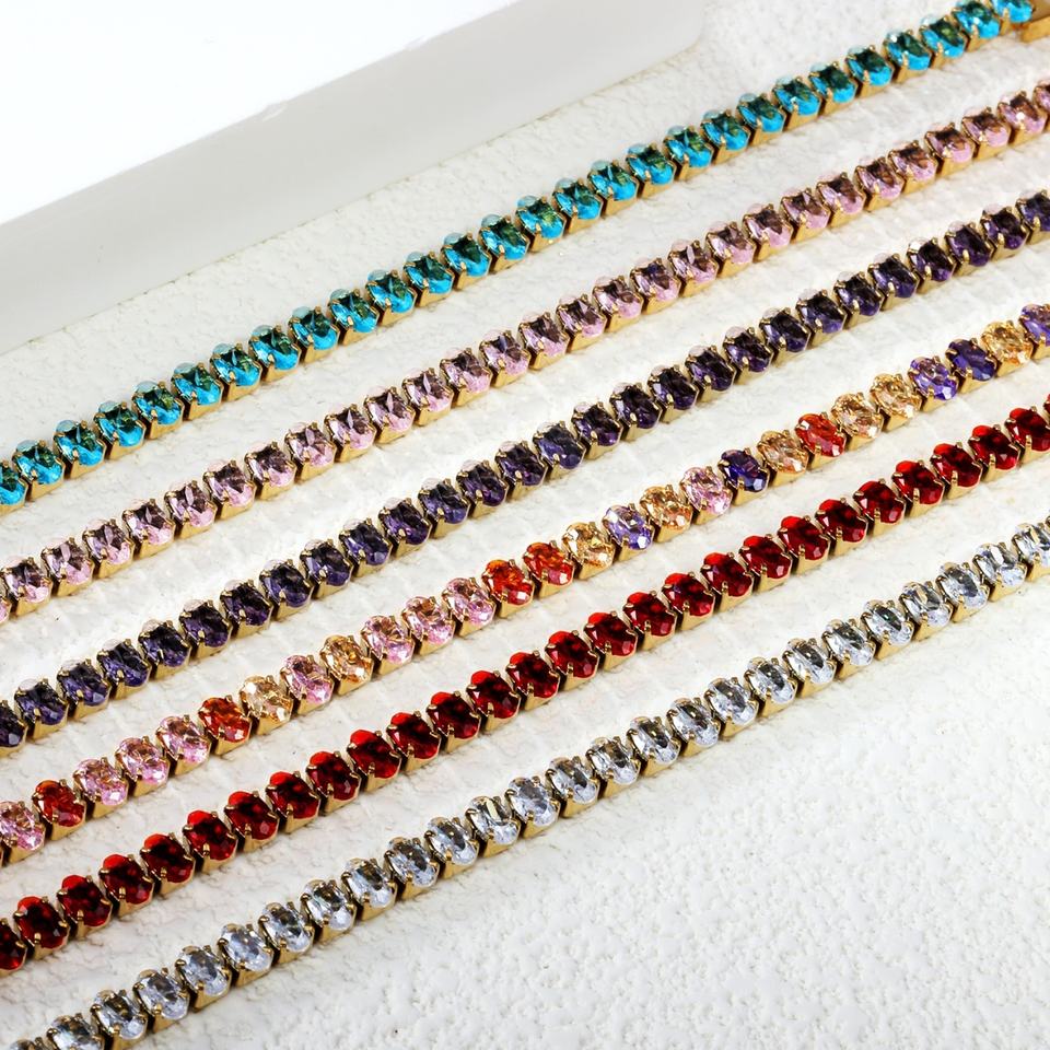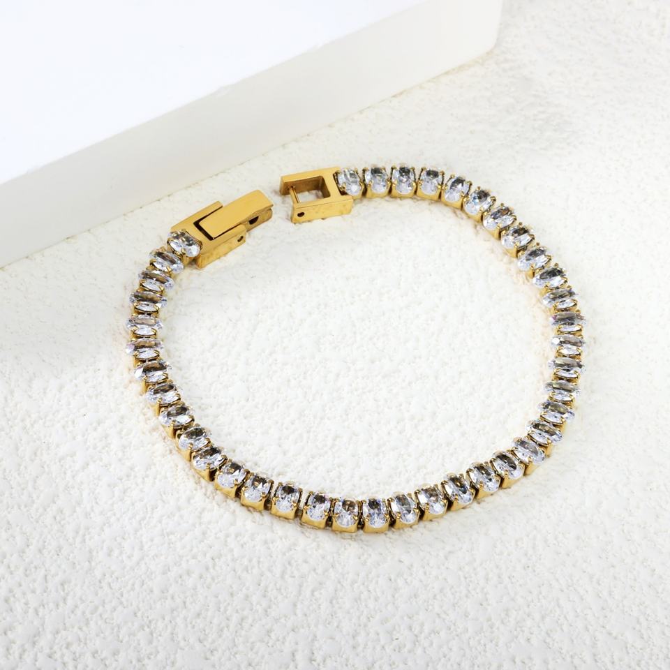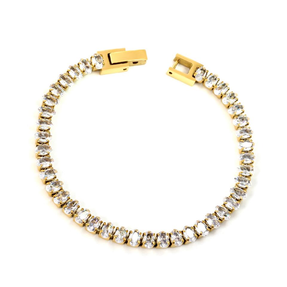 Trendy 18k Gold Plated square Full Zircon Waterproof Charms Bracelet Stainless Steel Women Jewelry Bracelets for Ladies Gift