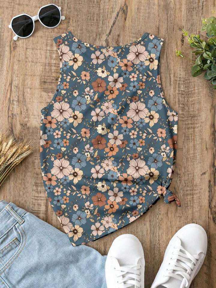 Trendy 2025 Floral Tank for Women Round Neck Sleeveless Style Slim Fit Perfect for Summer Fashion