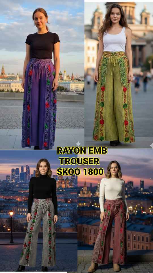 Trendy 2025 Womens Satin Elastic Waist Rayon Embroidery Breathable Summer Trouser Premium Material Embroidered Detail Vintage