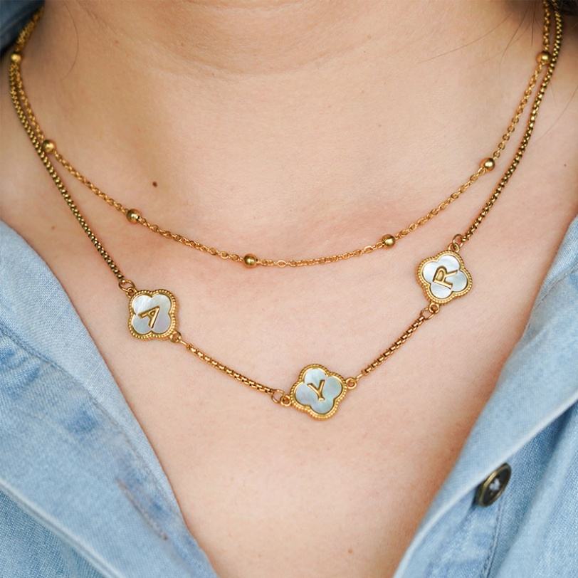 Trendy 2026 Charm Necklaces 316l Stainless Steel 18k PVD Gold Plated Mother of Pearl Letter Necklace Custom Name for Women