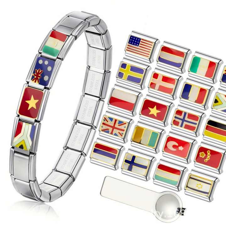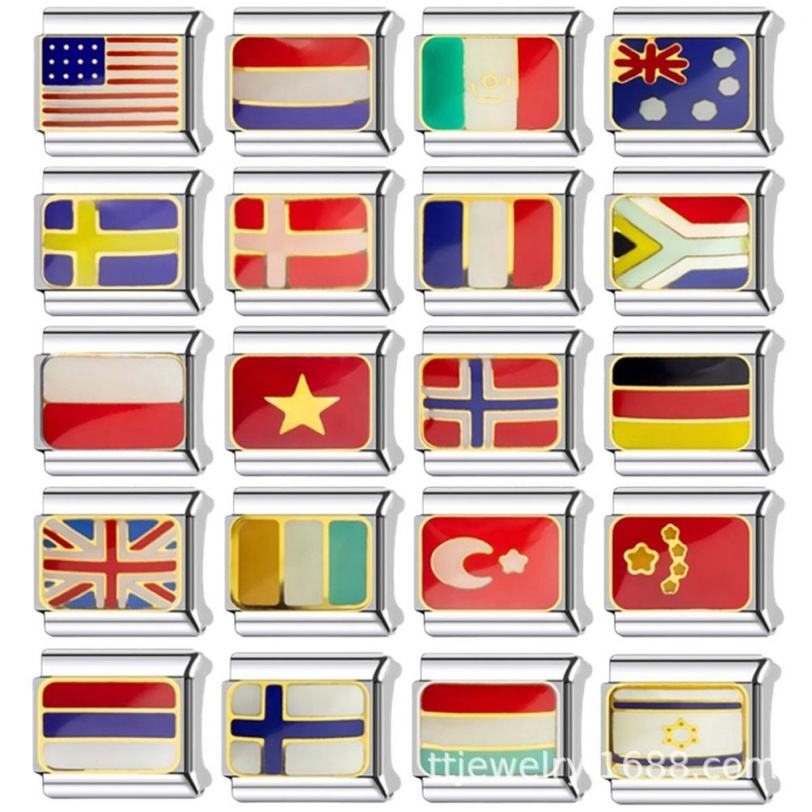 Trendy 316l 18k Stainless Steel Luxury Customize Italian Charm Bracelet World Flag Charms for Jewelry Making Wholesale