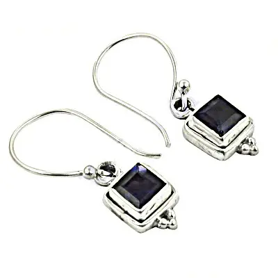 Trendy 925 Silver Iolite Earrings for Women Cute Geometric Platinum Gemstone for Engagement Wedding Anniversary Party Gift