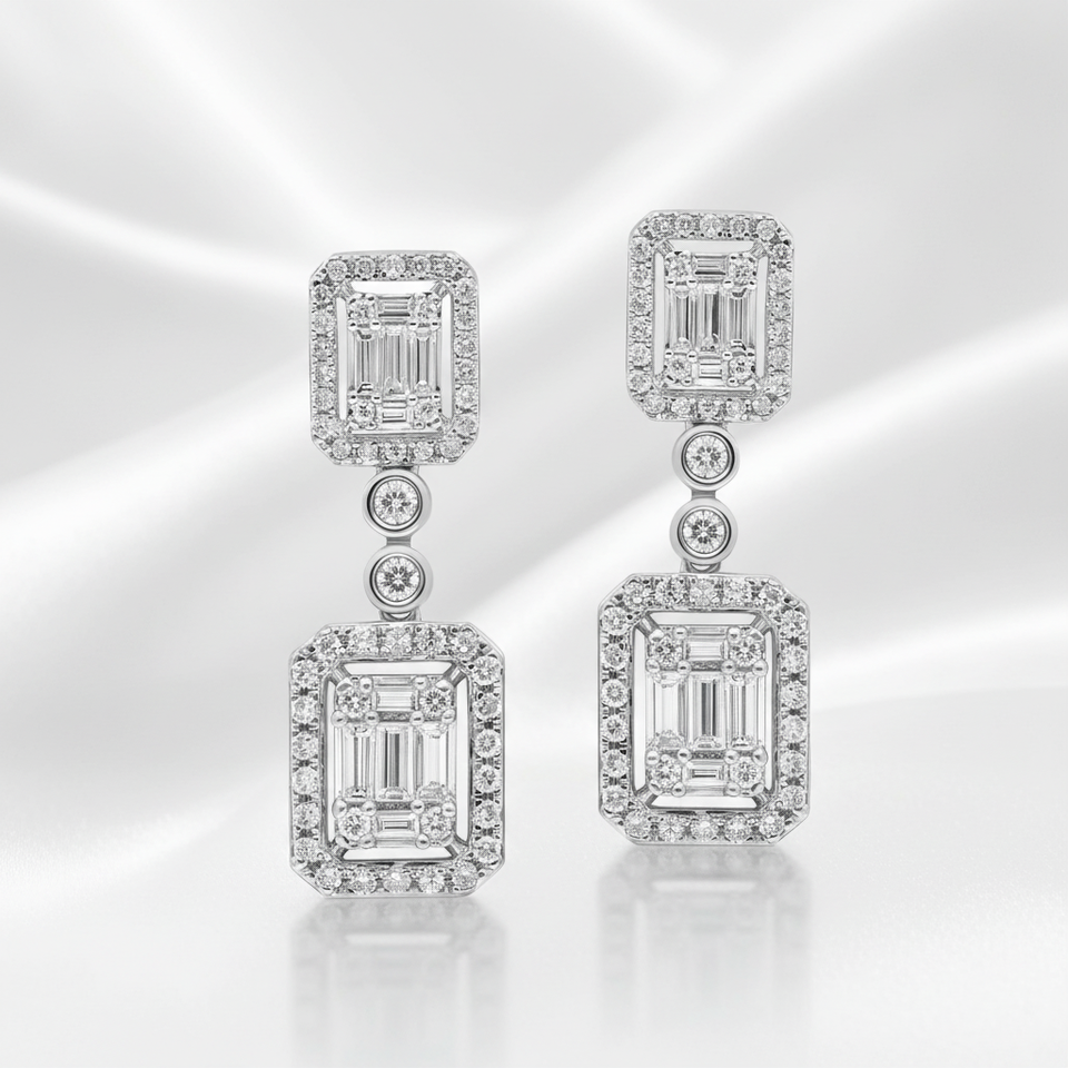Trendy 925 Silver Moissanite 1.2 CT*2 Emerald Cut Diamond Teardrop Square Drop Earring Party Engagement Wedding Bridal Jewellery