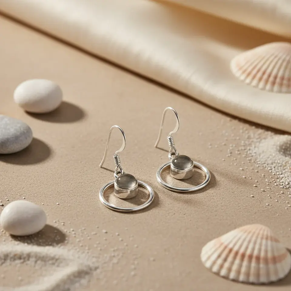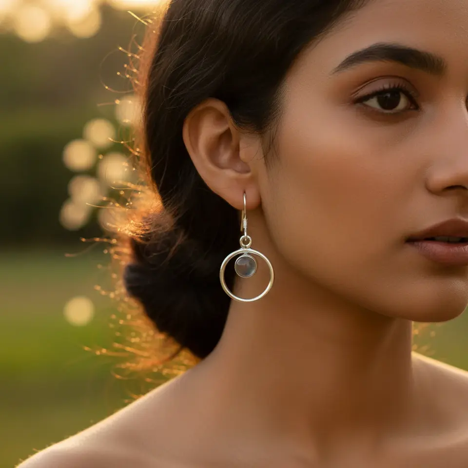 "Trendy 925 Silver Moonstone Hoop Earrings for Women-Dangle Gift Religious"