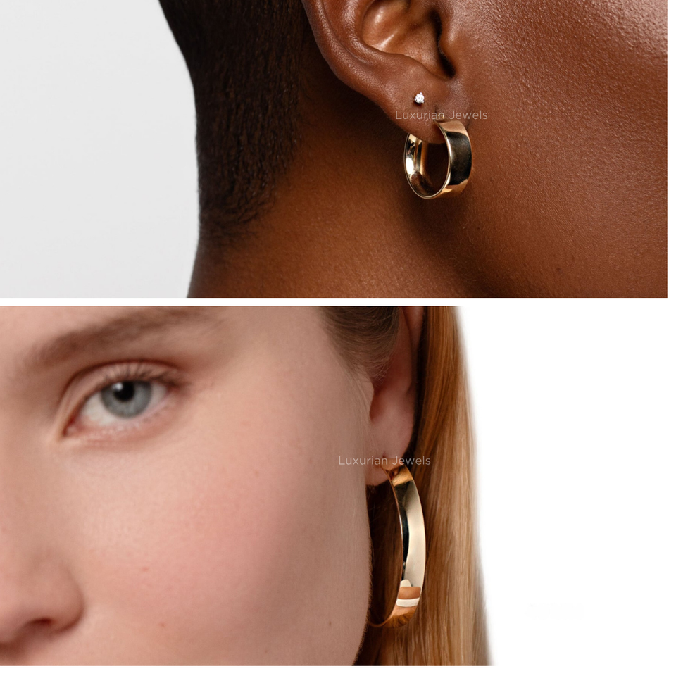 Trendy 925 Sterling Silver 20mm Flat Gold Hoop Earrings Minimalist Large Hoop Jewelry Wedding Gift