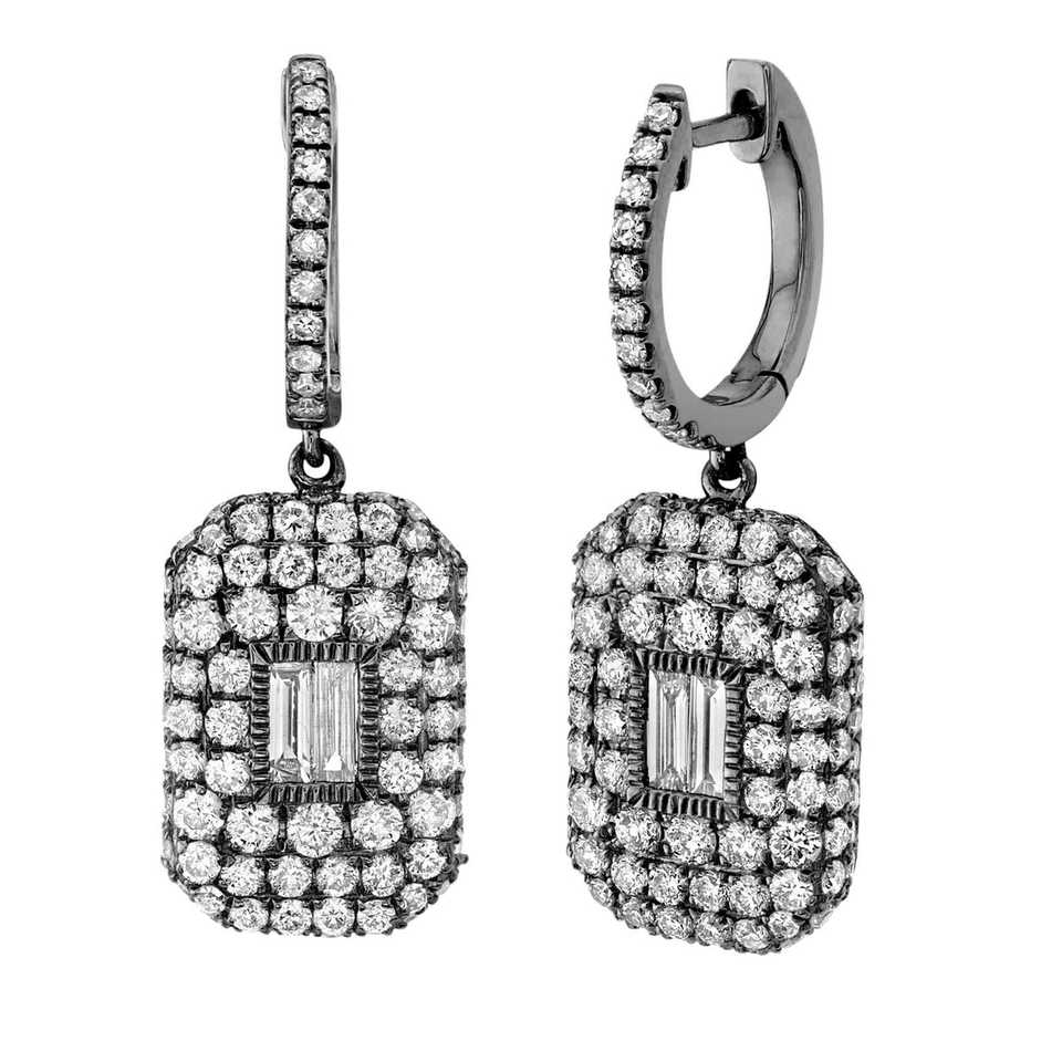 Trendy 925 Sterling Silver Baguette And Round Diamond Dangle Drop Earrings Moissanite Drop Dangle Cluster Earrings For Her
