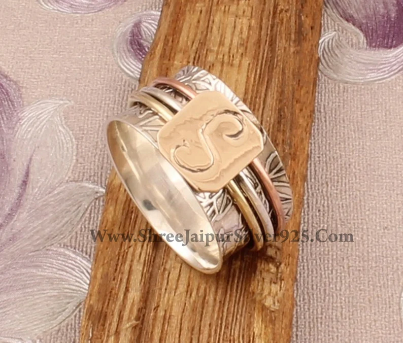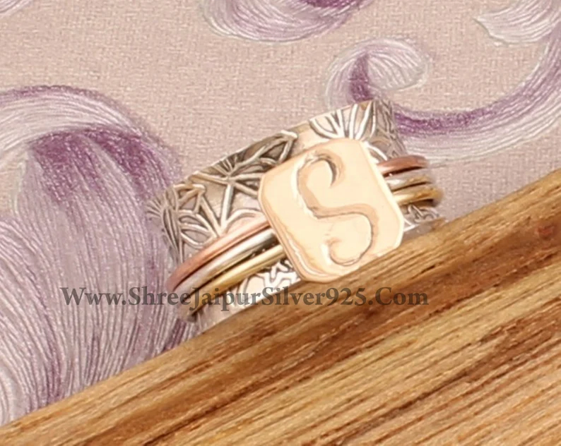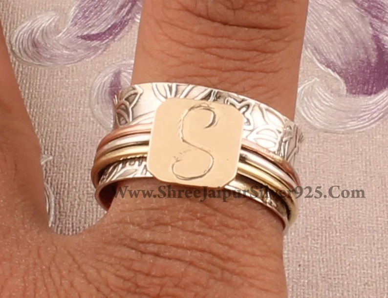 Trendy 925 Sterling Silver Carved Fidget Rings High Quality Bead Spinner Unisex Anti-Anxiety Vintage Wedding Party