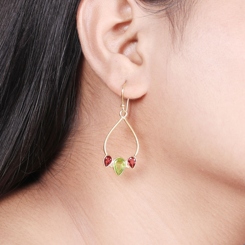 Trendy 925 Sterling Silver Gold plated garnet and peridot minimal earrings Fine Jewelry Set for Women