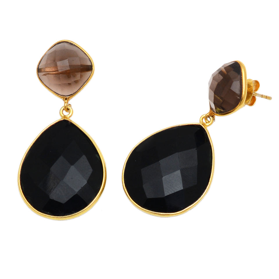 Trendy 925 Sterling Silver Handmade Drop Dangle Earrings Gold Plated Natural Smokey Black Onyx Gemstone Classic for Wedding Gift
