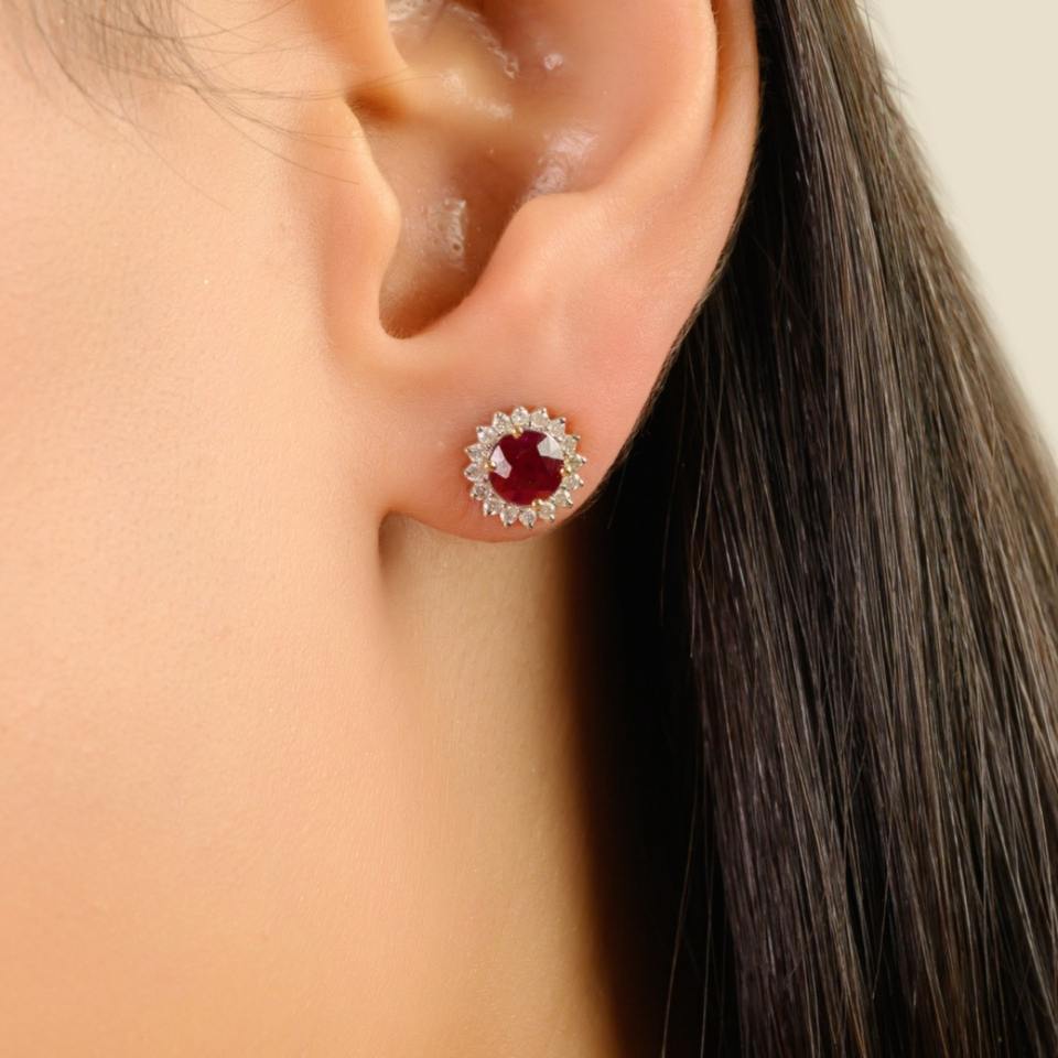 Trendy 925 Sterling Silver Red Moissanite Diamond Classic 14K Gold Plated Stud Earrings for Women