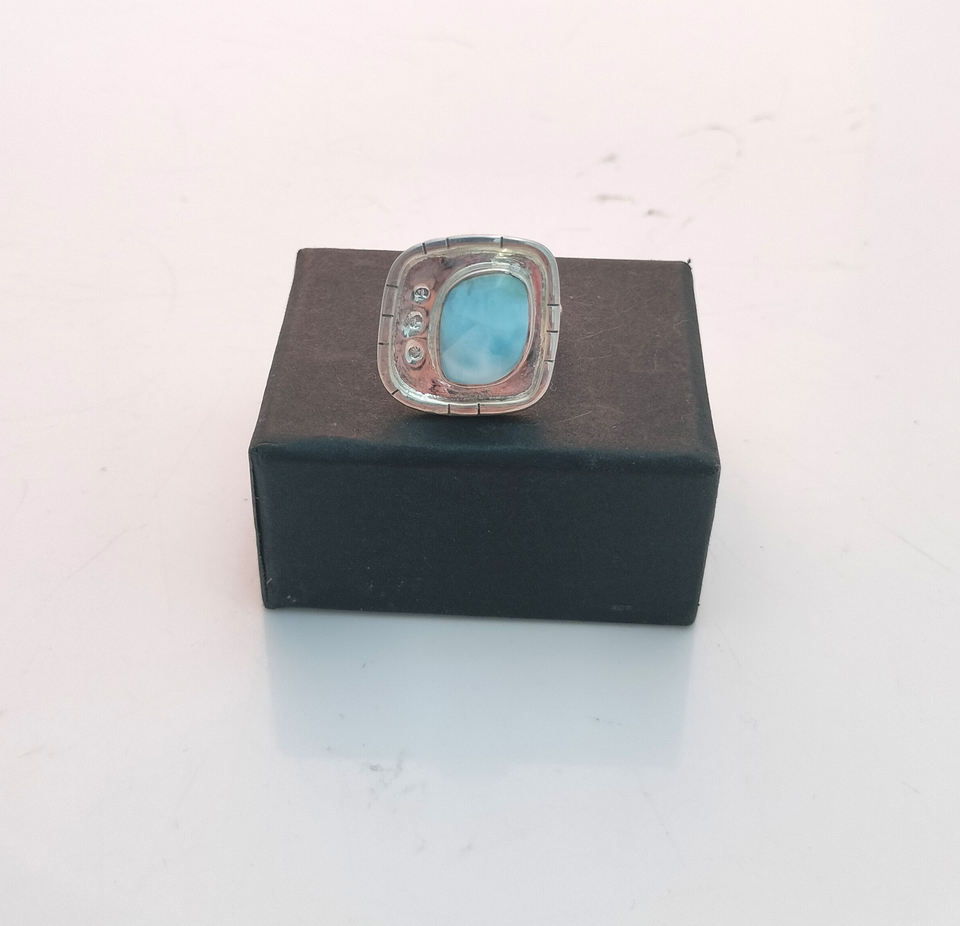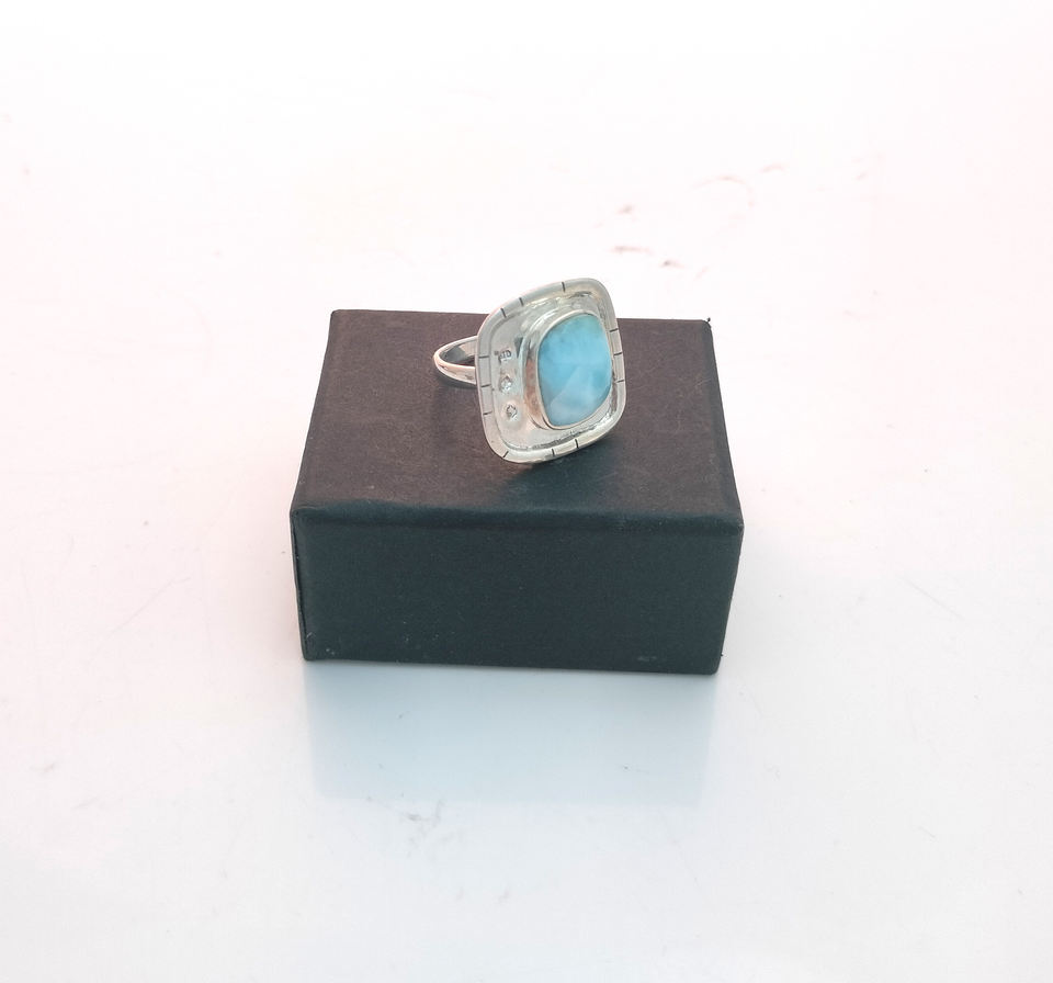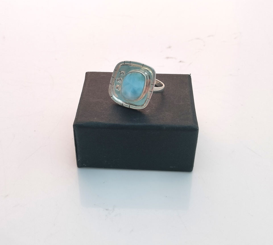 Trendy 925 Sterling Silver Women's Finger Ring Dainty Jewelry Larimar Stone Bezel Setting Technique Fashionable Girls' Accessory