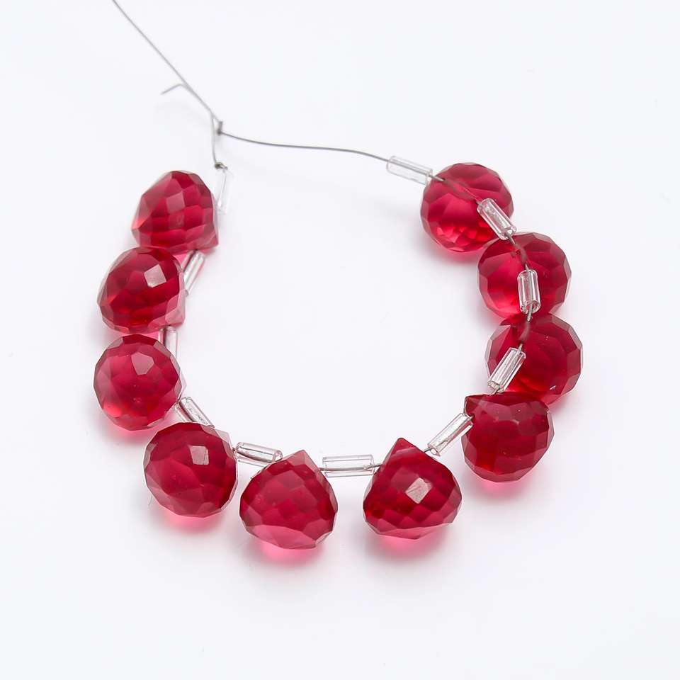 Trendy AAA Grade Red Rubellite Hydro Quartz Onion Shape Briolette Beads Micro Faceted 6 Matched Pairs for Earring Making Stone