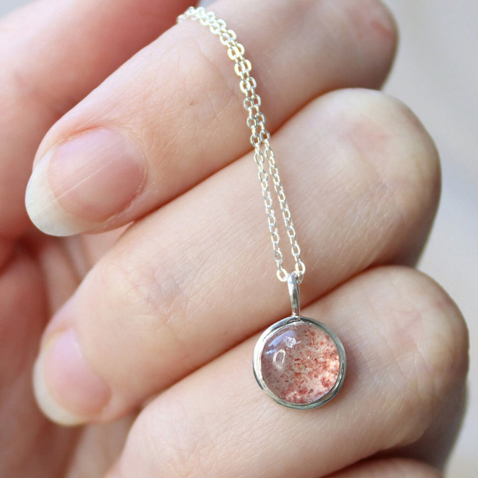Strawberry Quartz Pendant:Silver Pendant Necklace