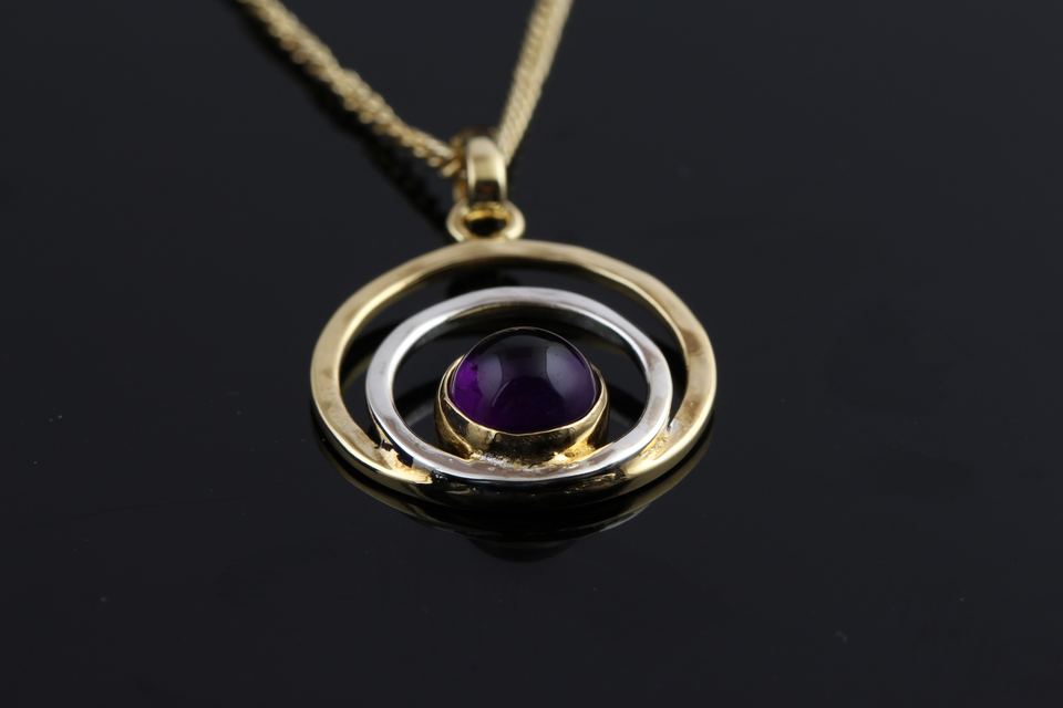 Trendy Three-Layer Amethyst Circle Pendant Necklace Two Tone Plating for Engagement Wedding or Party