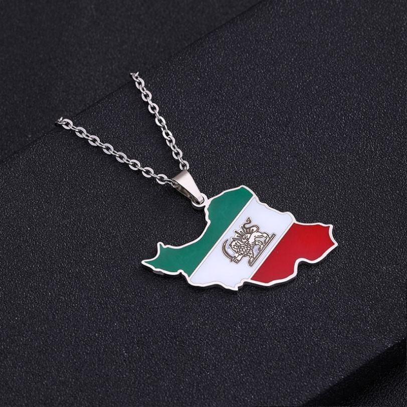 Trendy Anti Tarnish Silver and Gold Pvd Necklaces 316l Stainless Steel Fine Jewelry Iran Map Necklace for Women