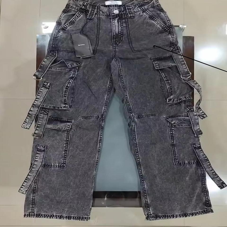 Trendy Baggy Fashion Casual High Waist Wide Leg 8 Pockets Cargo Denim Jeans Women Pant with Pocket Wholesale Ladies Girls Jeans