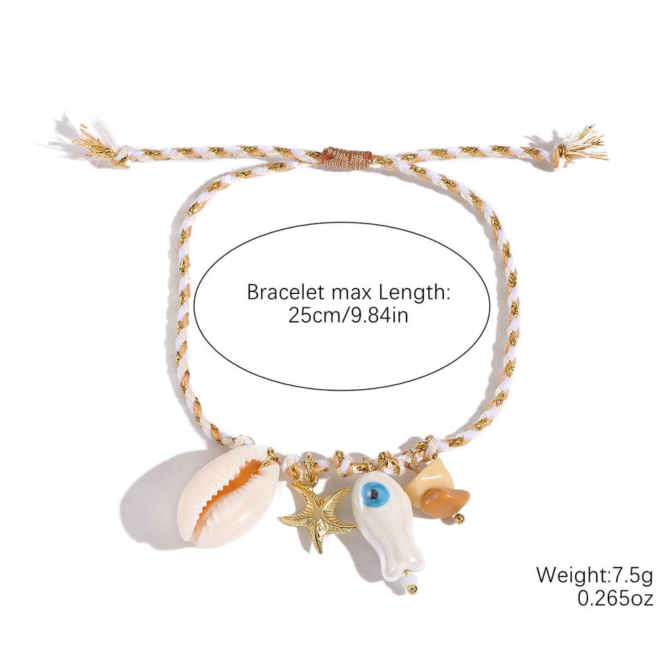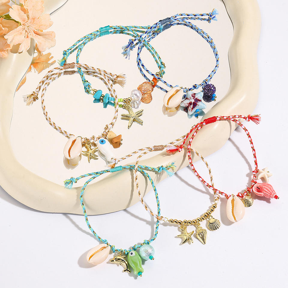 Trendy Beach Jewelry Braided Ceramic Shell Starfish Bracelet Unisex Handcrafted Adjustable Charm Bracelet