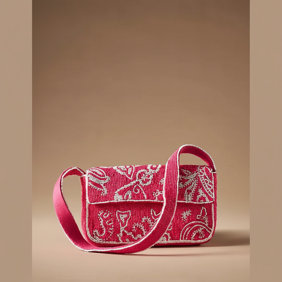 Trendy Beaded Mini Purse with Stylish Strap Belt
