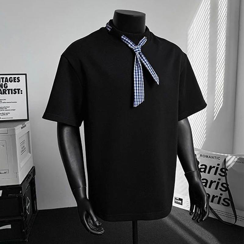 Trendy Beaded Short Sleeve T-Shirt for Men Vintage Style Breathable Moisture Wicking Summer New American Design High-End Feel